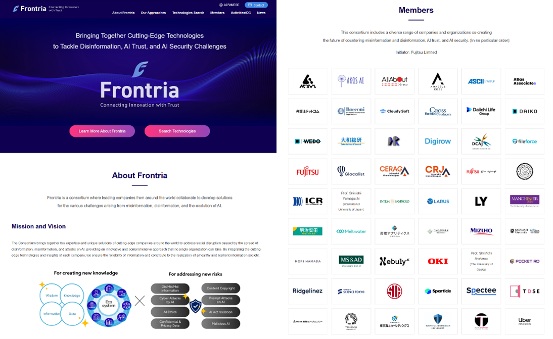 Fujitsu Limited kondigt de lancering aan van Frontria, een internationaal consortium dat meer dan vijftig wereldwijde organisaties samenbrengt. Het consortium wil de groeiende uitdagingen aanpakken zoals door AI gegenereerde disinformatie, misinformatie, kwetsbaarheden in AI-systemen en compliance met de regelgeving. Het doel is een gezonde en wendbare samenleving te creëren door baanbrekende technologieën en kennisdeling. Dit moet de betrouwbaarheid van informatie vergroten en ook het vertrouwen en de veiligheid van AI verzekeren.