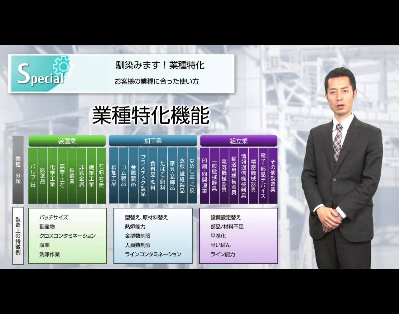 Provide specialized functions for equipment, processing, and assembly industries. This will lead to early introduction and early operation by customers.