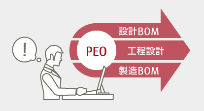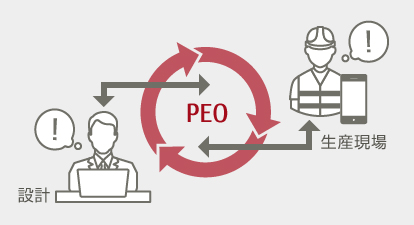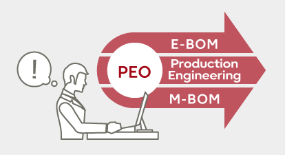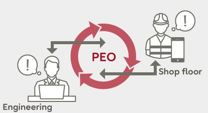 Vertical integration between design and production site (PEO)The consistent linkage of information between design and the production site allows technical requirements to flow down. The effects of design changes are quickly applied to the production site, minimizing the impact of production disruptions.