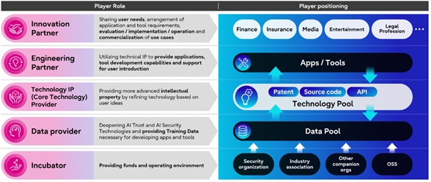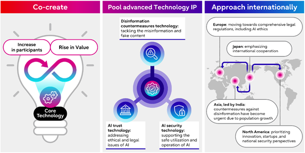 Frontria ambitionne de créer rapidement des applications et services concrets et, en partageant sans délai les informations sur leurs cas d’usage cherchera à promouvoir l'adoption de la propriété intellectuelle technologique qui renforce la fiabilité et la sécurité de la technologie IA et lutte contre la désinformation. Au cours de l’exercice 2025, le consortium commencera ses activités avec des organisations participantes situées au Japon, en Europe, en Amérique du Nord, en Inde, en Australie et dans d’autres régions. Il collaborera avec des organisations issues de divers secteurs à travers le monde afin d’élargir le périmètre du consortium et de créer de nouveaux cas d’usage dans des domaines tels que la finance, l’assurance, les médias, le divertissement, le droit et les activités liées à l’IA. D’ici la fin de l’exercice 2026, le consortium vise à rassembler plus de 100 organisations participantes dans le monde, générant ainsi de multiples cas d'utilisation de la propriété intellectuelle.