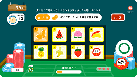 FCCLは「ふくまろ」を“もうひとりの家族”と位置づけ、最新技術でお客様ひとりひとりの生活に寄り添いながら、進化させてまいりました。昨今のコロナ禍により、外出を控えるシニアの増加や、子どもたちのお出かけの制限により、おうち時間の充実をはかるご家庭が増えています。7月1日より提供開始するふくまろゲームランドでは、シニア層、子どもたちでも簡単に遊ぶことのできる飽きのこない(脳トレ的な)ゲームを取り揃えました。ゲームでは難しい操作は一切なく、音声およびマウスによる入力で、基本無料でご使用していただけます。現時点では、音声で楽しめるミニゲーム(計算でふうせんBANG!、じーっとθθおぼえてHIT!、えらんで!ものしりQ)を3つ展開しており、今後拡張予定となっております。「ふくまろ」のかわいさと音声認識を合わせたゲームとなっておりますので、楽しいおうち時間を過ごしていただくために、ぜひこちらのゲームをご活用ください。