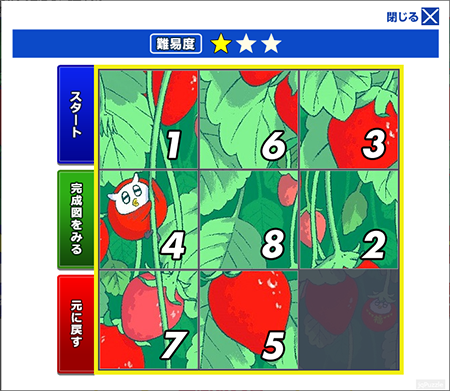 第一弾のお楽しみコンテンツは、「ふくまろ」の絵合わせゲームです。絵合わせパズルを完成させるとキャンペーンに応募することができます。キャンペーンには1日1回応募でき、毎日応募すれば当選確率があがります。