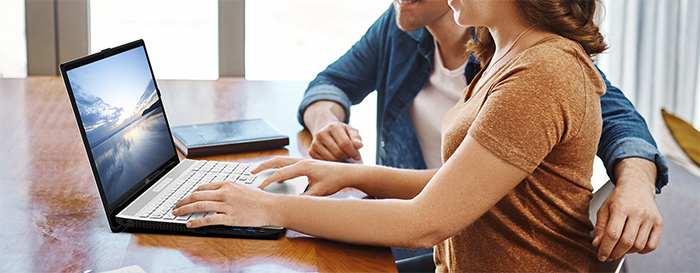 「LIFEBOOK AHシリーズ」は、リビング利用に適したA4サイズのノートパソコンです。狭額縁ディスプレイや高音質スピーカー、打ちやすいキーボードなど細部まで快適性を追求し、プライベートからビジネスまで幅広く活用できます。