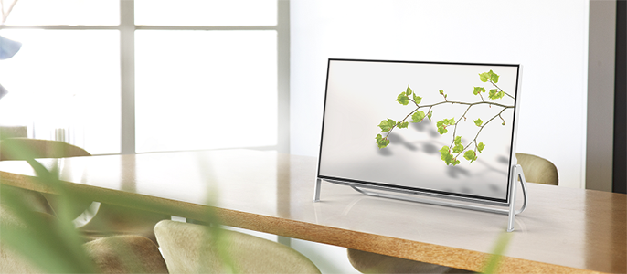 カバーの構造を改良し画面周りのさらなる狭額縁化※3を実現したほか、部品配置を見直し、本体フロント部をスリムに。底面部カバーにはレザーのような質感加工を施し、生活空間に馴染む上質なデザインを実現しました。