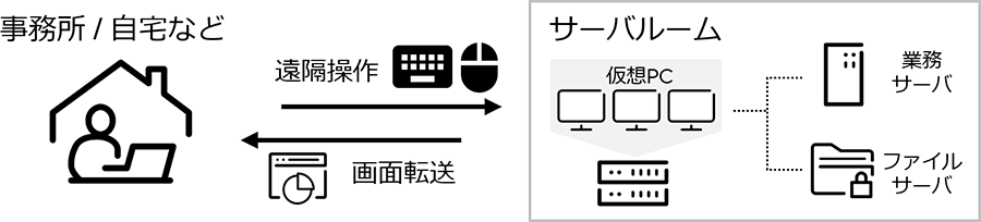 場所や端末を問わず社内の環境にアクセスすることが可能になり、情報漏洩対策や働き方改革に貢献します。