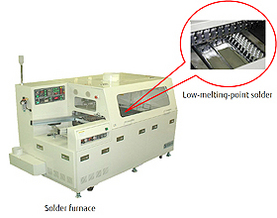 Fujitsu IT Products Limited, which makes server products, had adopted the use of lead-free solder to comply with the RoHS Directive for UNIX servers. The solder, however, had a high melting point of over 200℃, meaning that the heater for the solder furnace had to be kept at a high temperature and large amounts of electricity were consumed.