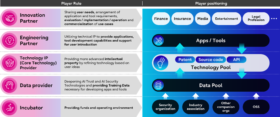 Deelnemende organisaties en experten zijn (sinds 2 december 2025): ctiv8 Inc., AKOS AI SRL, All About, Inc., Amadeus Code Inc., ASCII STARTUP, Atlas Associates Inc., Bengo4.com Inc.,Prof. Oreste Pollicino (Bocconi University), Cloudy Soft, CROSS Business Producers Inc., Dai-ichi Life Holdings Inc., DAIKO ADVERTISING INC., DAIKO WEDO creative & development Inc., Daiwa Institute of Research Ltd., Data Resources Inc., Digirow K.K., Digital Content Association of Japan, Fileforce Inc, Fujitsu Limited, Glocalist Co., Ltd., Prof. Nicolas Lesca (University Grenoble Alpes), Prof. Amélie Favreau (University Grenoble Alpes), G-Search Limited, Indian Institute of Technology Delhi, InfoCom Research Inc., Prof. Shinichi Yamaguchi (International University of Japan), Intesa Sanpaolo, LARUS Business Automation S.r.l., LY Corporation, Prof. Ananiadou Sophia (The University of Manchester), Doctor Batista-Navarro Riza Theresa (The University of Manchester), Prof. Junichi Tsujii (AIST & The University of Manchester), Meiji Yasuda Life Insurance Company, Meltwater Japan, Miotsukushi Analytics Co. Ltd., Miura & Partners, Mizuho Financial Group Inc., Associate Prof. Abhinav Dhall (Monash University), Mori Hamada & Matsumoto, MS&AD Insurance Group Holdings Inc., Nebuly, Oki Electric Industry Co. Ltd., Prof. Shin'ichi Arakawa (The University of Osaka), POCKET RD Inc., Ridgelinez Limited, Prof. Kazutoshi Sasahara (Institute of Science Tokyo), Center for Education in Healthcare Innovation, Institute of Science Tokyo, Consortium for Medical and Drug Discovery Data Science, SIA Media Inc, Sparticle Inc., Spectee Inc., TDSE Inc., TOEI ADVERTISING Ltd., Tohoku University, Tokio Marine Holdings, Inc., Prof. Masaki Aida (Tokyo Metropolitan University), Trusted Corporation, Uber AI Solutions.