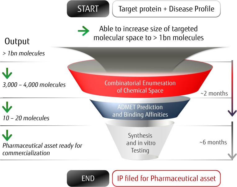 - The platform leverages an annealing based molecule filter harnessing the computing power of Fujitsu’s Quantum Inspired Technology.